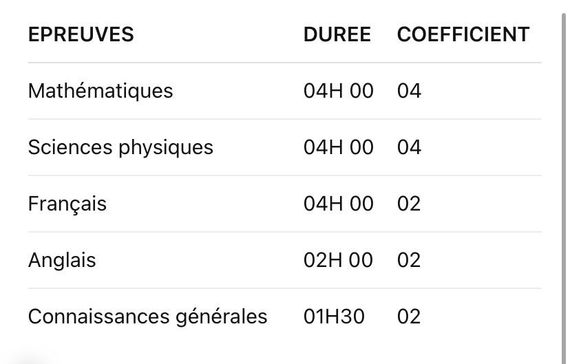 Elles comportent des épreuves écrites d’instruction générale du niveau de la licence et se dérouleront les samedi 20 et dimanche 21 juin 2026 à Dakar. Elles porteront sur les matières ci-après :