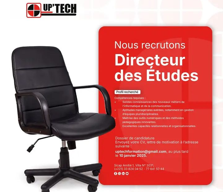 Avis : UP’TECH recrute un Directeur des Études (H/F) – Dakar/Sénégal