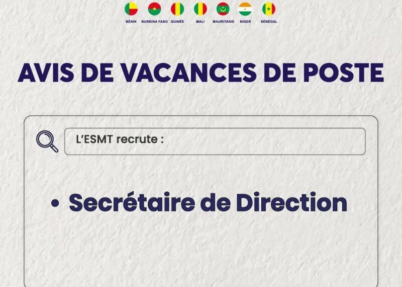 RECRUTEMENT ESMT SECRÉTAIRE DE DIRECTION Secrétaire de Direction PRESENTATION DE L’ENTREPRISE Centre d’excellence de l’Union Internationale des Télécommunications (UIT) (2000) et de l’Union Economique et Monétaire Ouest Africaine (2005), membre du Conseil Africain et Malgache pour l’Enseignement Supérieur (2006), l’ESMT offre dans le cadre de sa mission de développement
