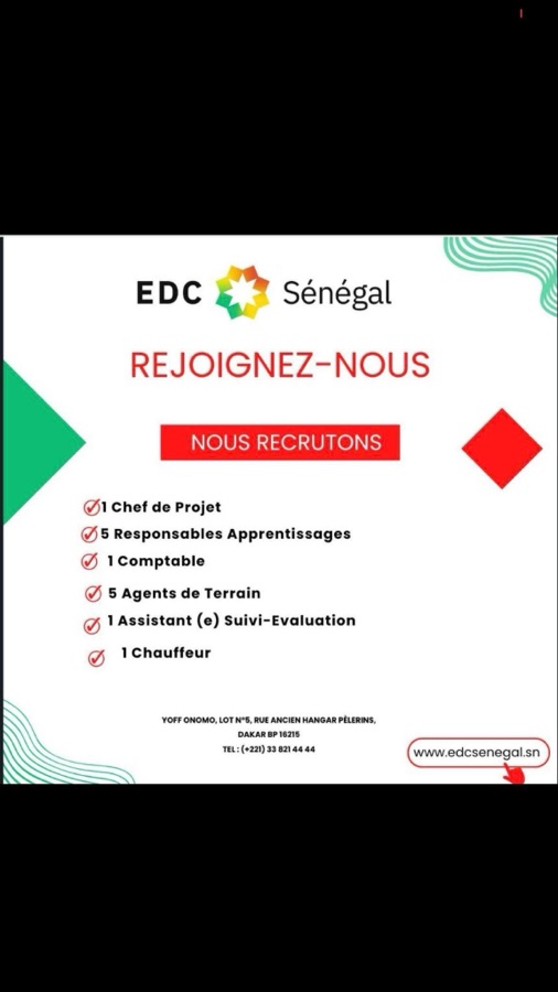 - 1 Chef de projet: https://edcsenegal.sn/wp-content/uploads/2025/08/JD_Chef_de_Projet__SD-1.pdf