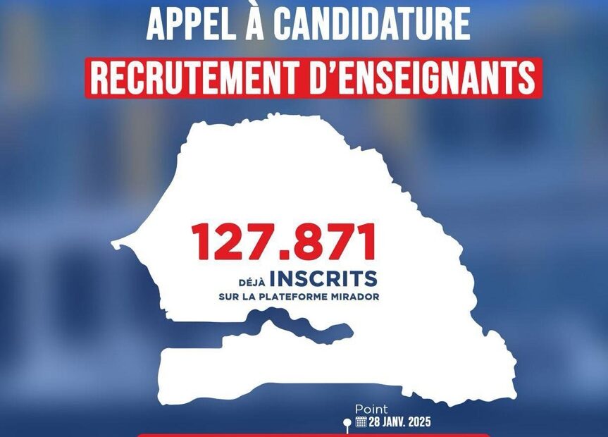 Lancé le 23 janvier dernier, l’appel à candidatures pour le recrutement d’enseignants par le Ministère de l’Éducation nationale suscite un fort engouement. À ce jour, 127 871 candidats se sont déjà inscrits sur la plateforme Mirador, dédiée à la gestion des candidatures en ligne. Les