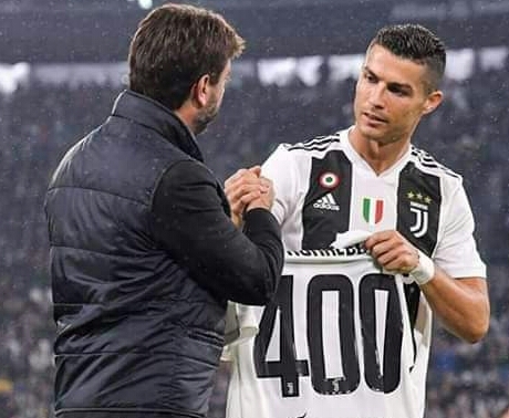Le président de la Juventus Agnelli a offert un maillot au quintruple ballon d’Or, Cristiano Ronaldo pour célébrer ses 400 buts inscrits dans les cinq grands championnats du monde. Le premier est le premier et le seul détenteur de ce record.