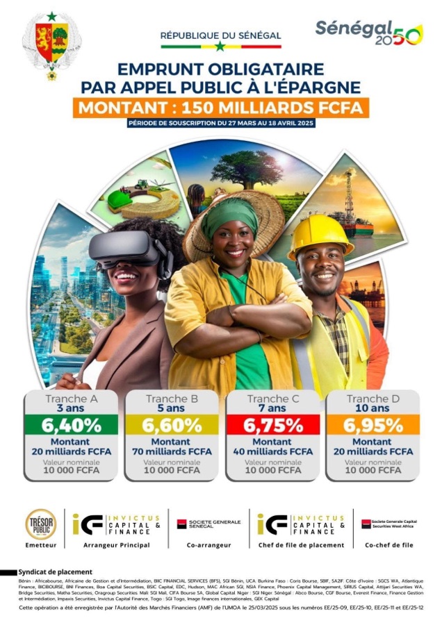 L’État du Sénégal, avec Invictus Capital & Finance SA, lance son premier emprunt obligataire par appel public à l’épargne de l’année 2025.
