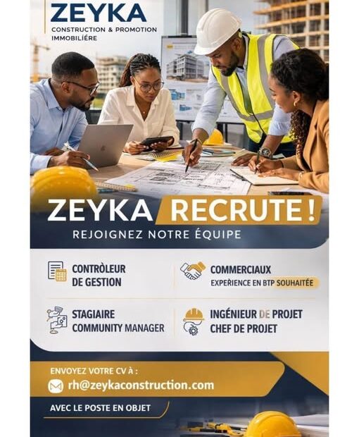 Opportunités d’emploi :ZEYKA Construction renforce ses équipes et recrute plusieurs profils