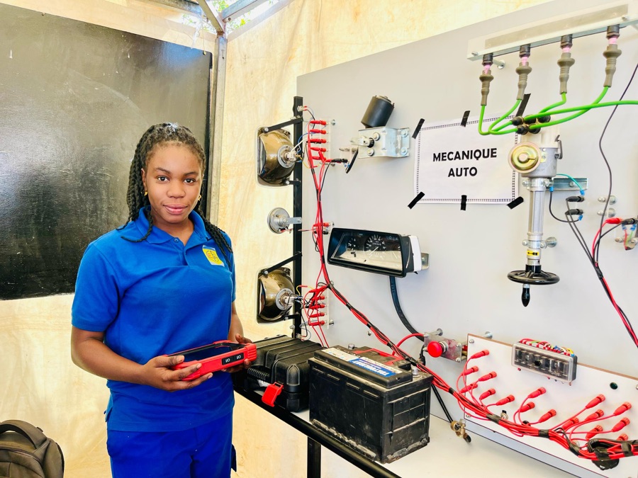 Actuellement inscrite en troisième année pour l’obtention de son diplôme, Sokhna Ba partage son quotidien entre l’atelier et ses cours au CFAM. Malgré les perceptions selon lesquelles la mécanique serait un métier difficile pour une femme, elle reste convaincue du contraire.