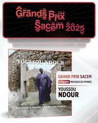 Youssou Ndour, éternel ambassadeur des musiques du monde, a une nouvelle fois marqué l’histoire ce lundi 24 novembre 2025 en recevant le Grand Prix Sacem 2025 pour son album “Éclairer le monde”. Cette distinction, l’une des plus prestigieuses de l’industrie musicale francophone, vient couronner un projet salué pour sa profondeur artistique, son ouverture culturelle et sa capacité à réinventer la world music tout en restant fidèle à l’âme sénégalaise.